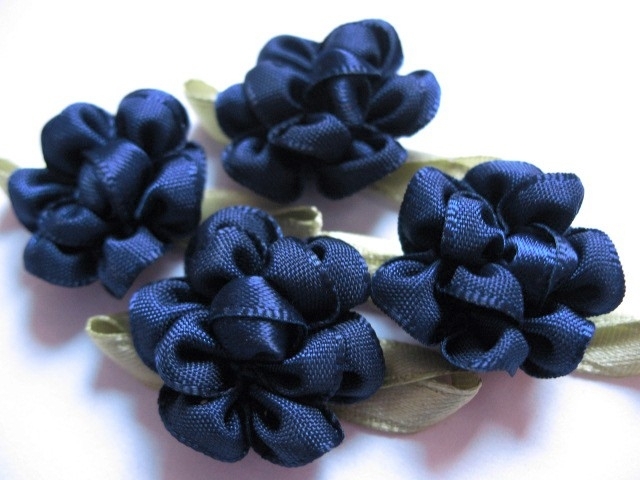 Roosje bloem met blad marineblauw 3.5cm.