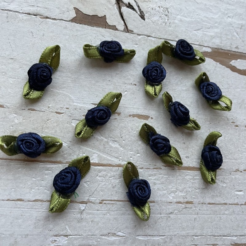 Roosje met blad marine 3cm.