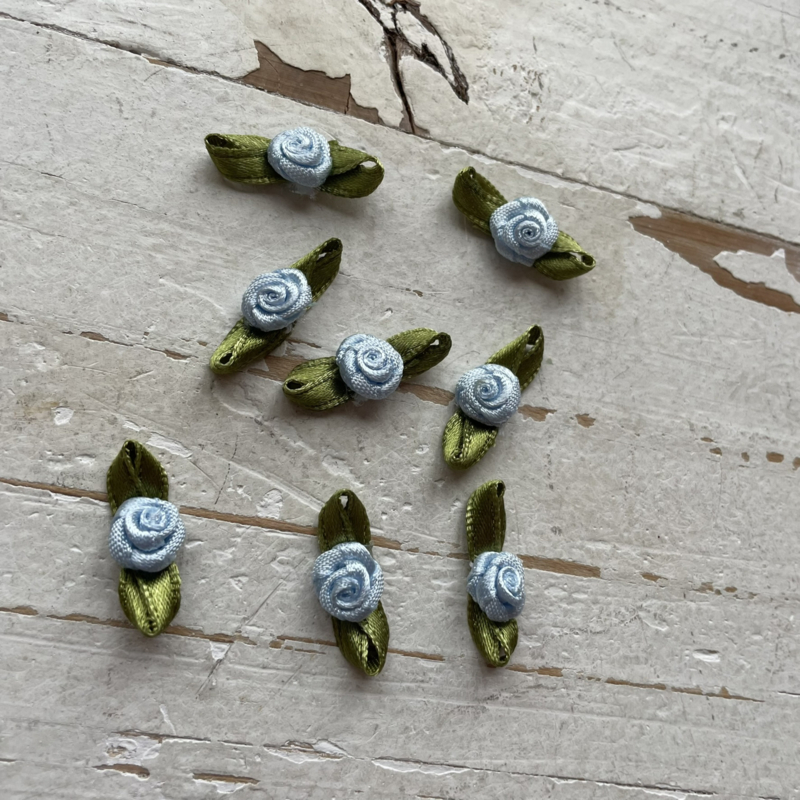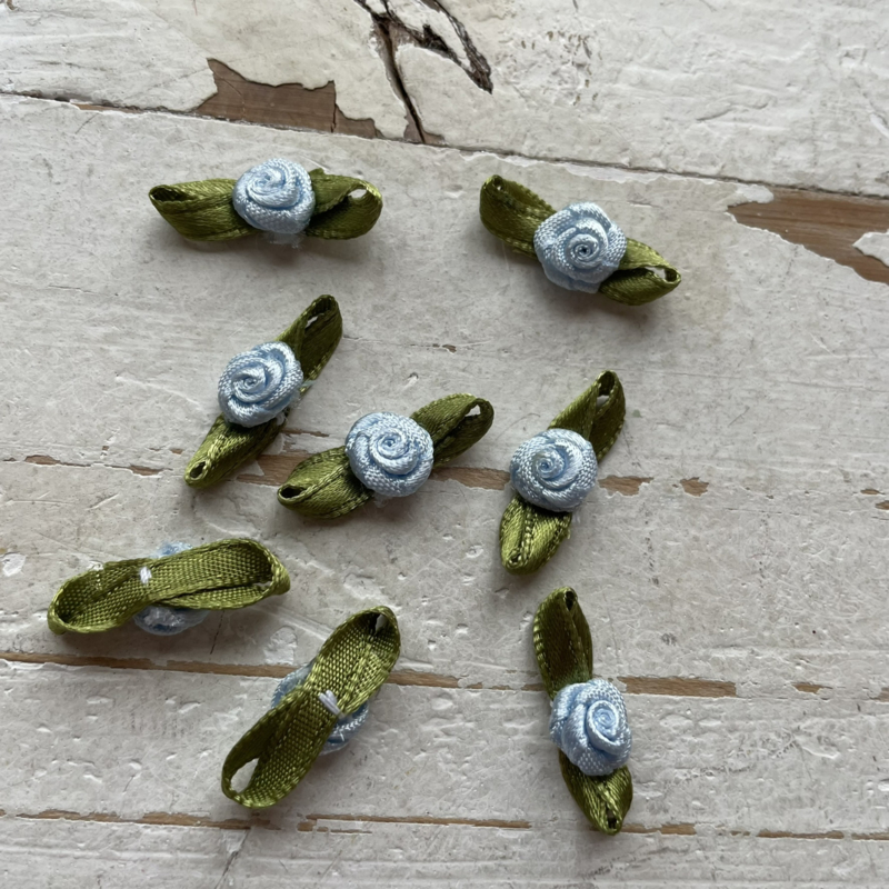 Roosje met blad licht blauw 3cm.