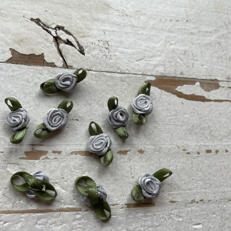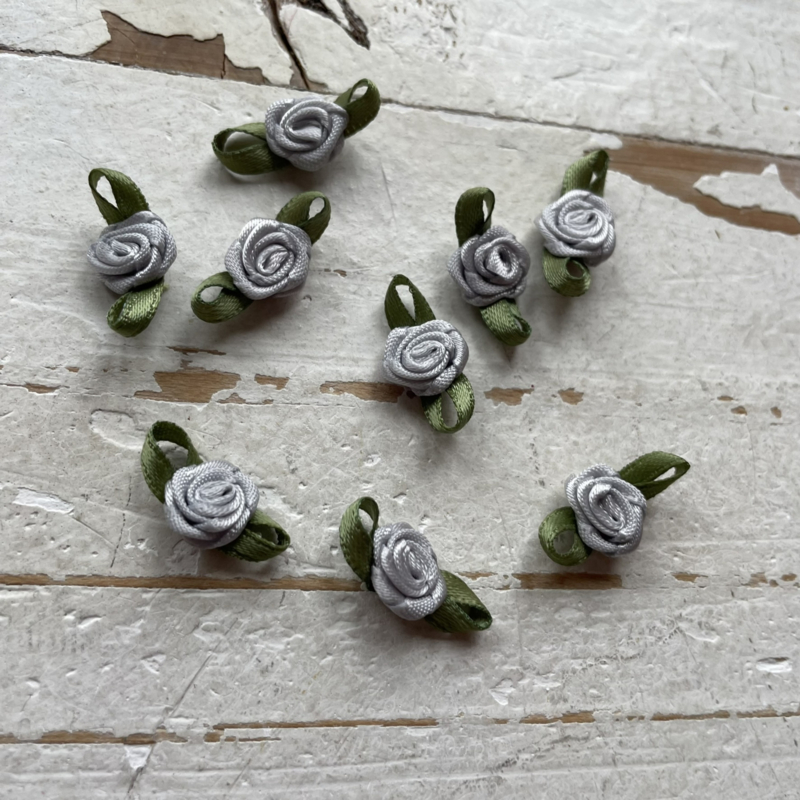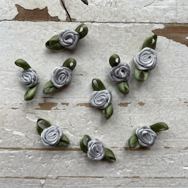 Roosje met blad zilvergrijs 2.2cm.