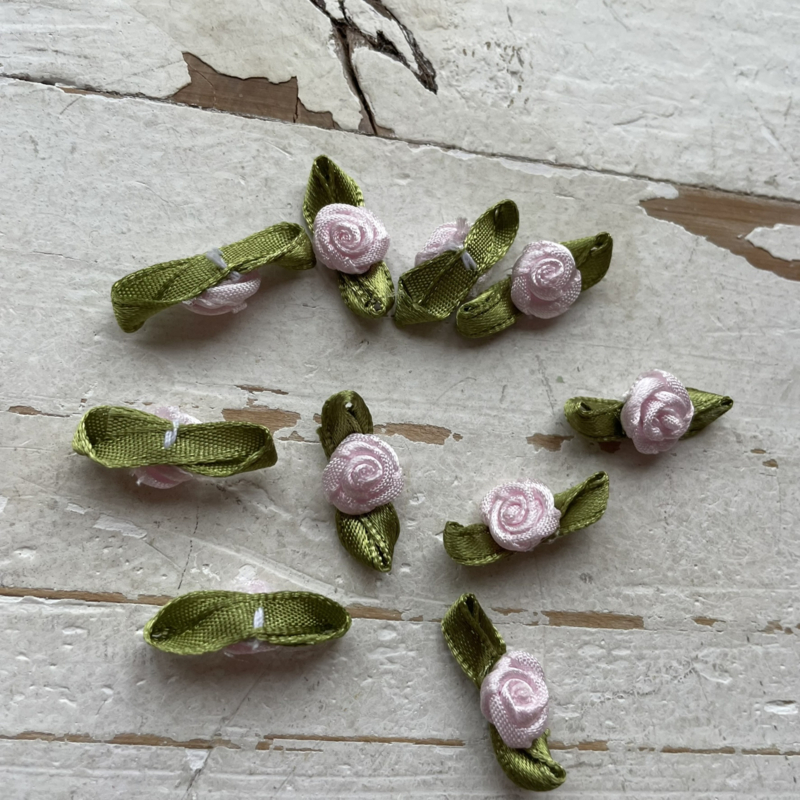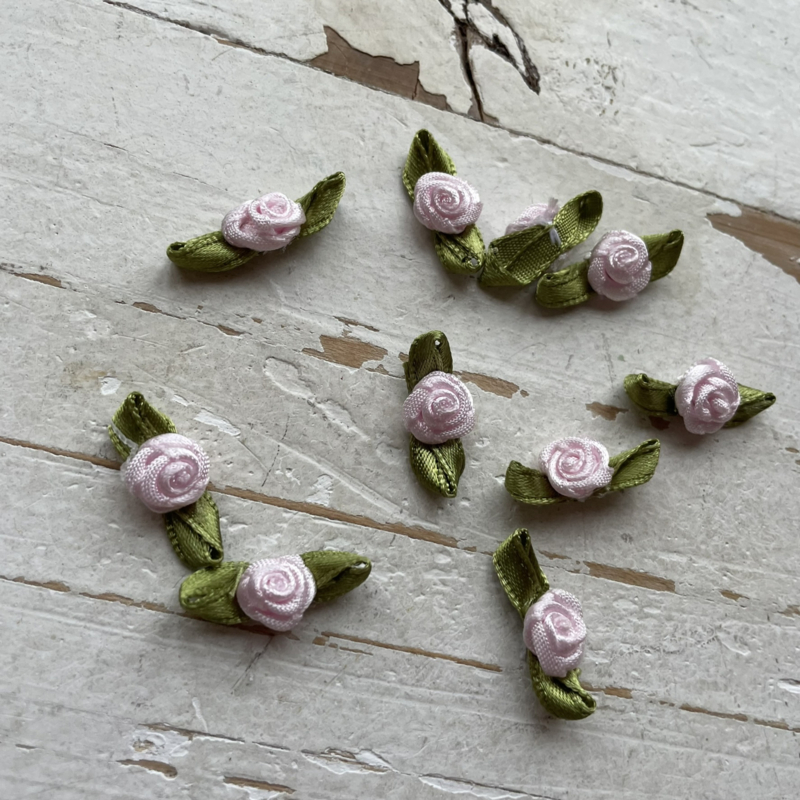 Roosje met blad baby roze 3cm.