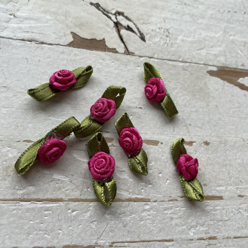 Roosje met blad fuchsia 3cm.