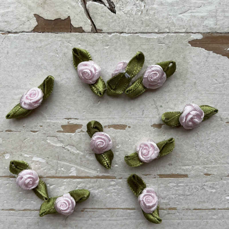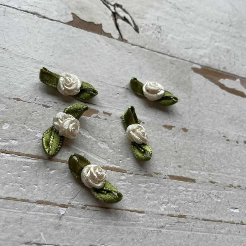 Stevig kwaliteit roosje met blad. Subtiele maar mooie roosjes verkrijgbaar in diverse kleuren! Super leuk voor het maken van haarknipjes en pimpen van tassen, kleding of geboorte trouw kaarten.