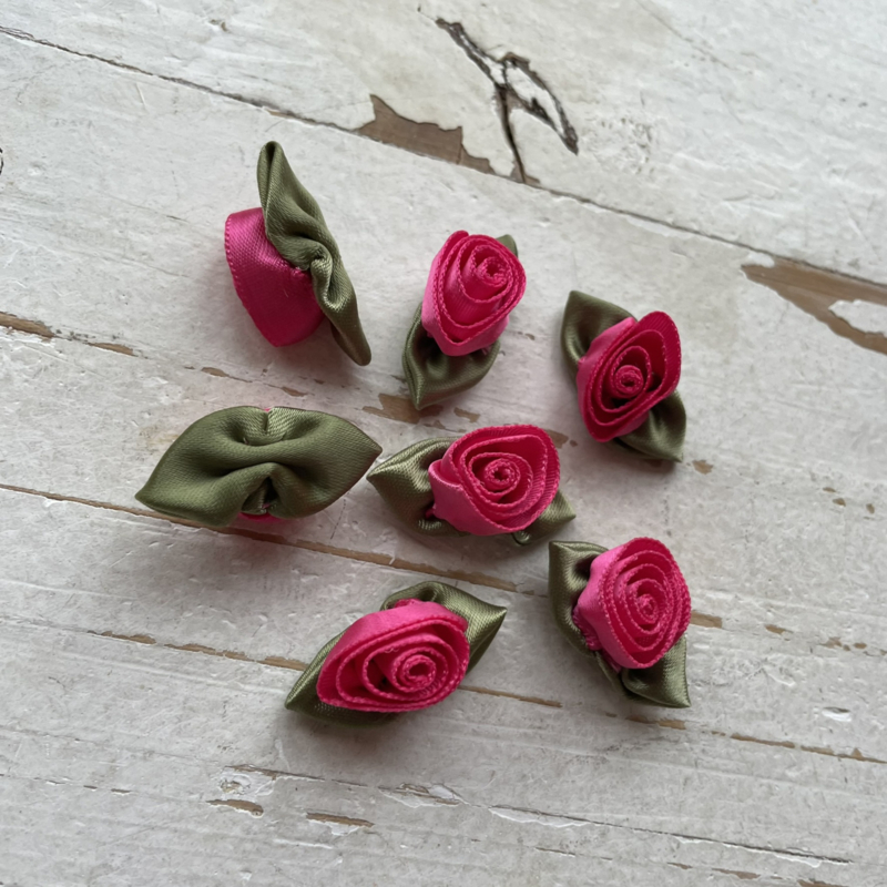 Roosjes met blad fuchsia 3cm.