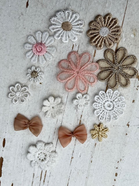 Bloem Madeliefje kant lichtroze 2.5cm.