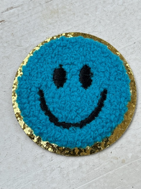 Opstrijkbare applicatie smile blauw-goud glitter