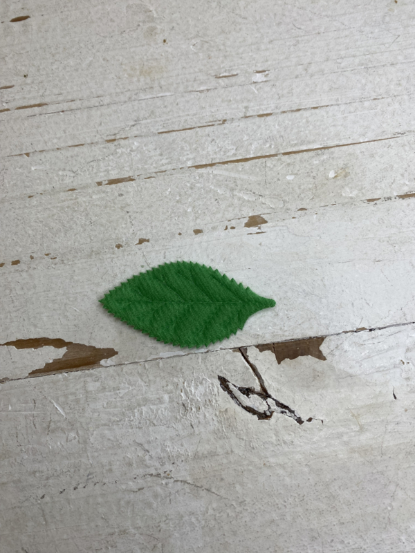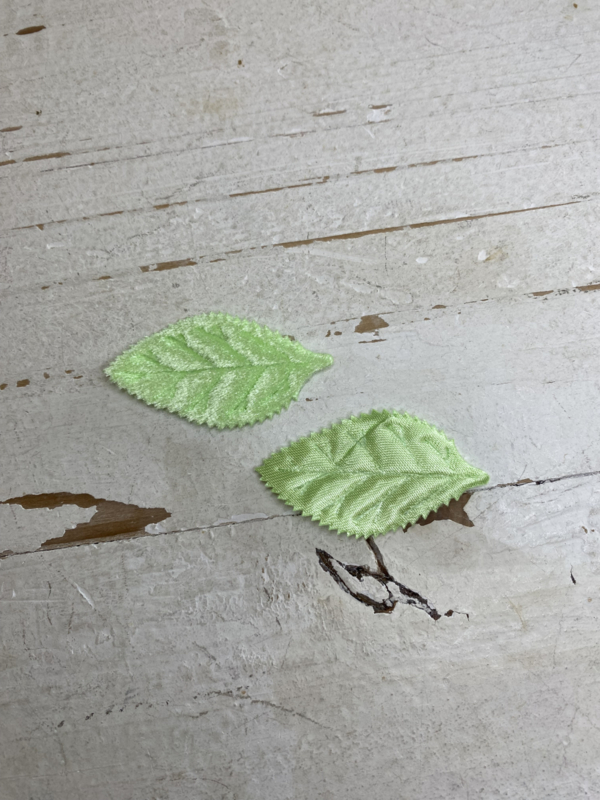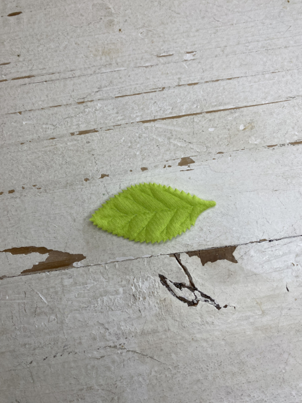 Groene blaadjes, diverse kleuren en uitvoeringen. 5.2x2.6cm.