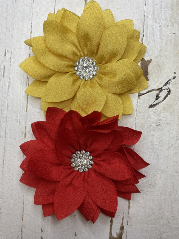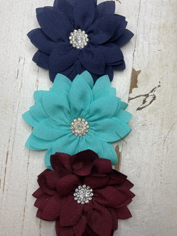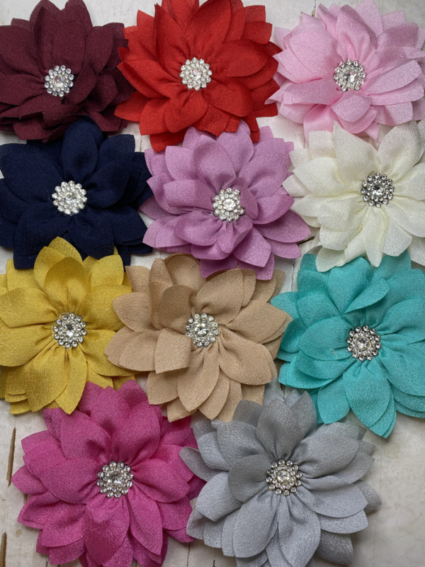 Bloem met strass rondje 9cm.