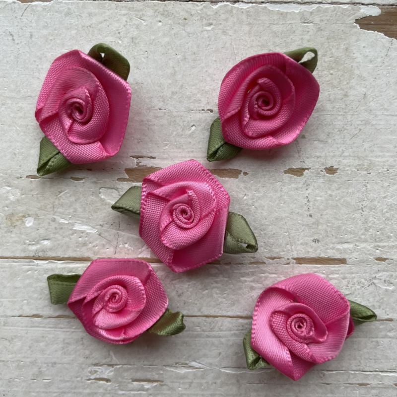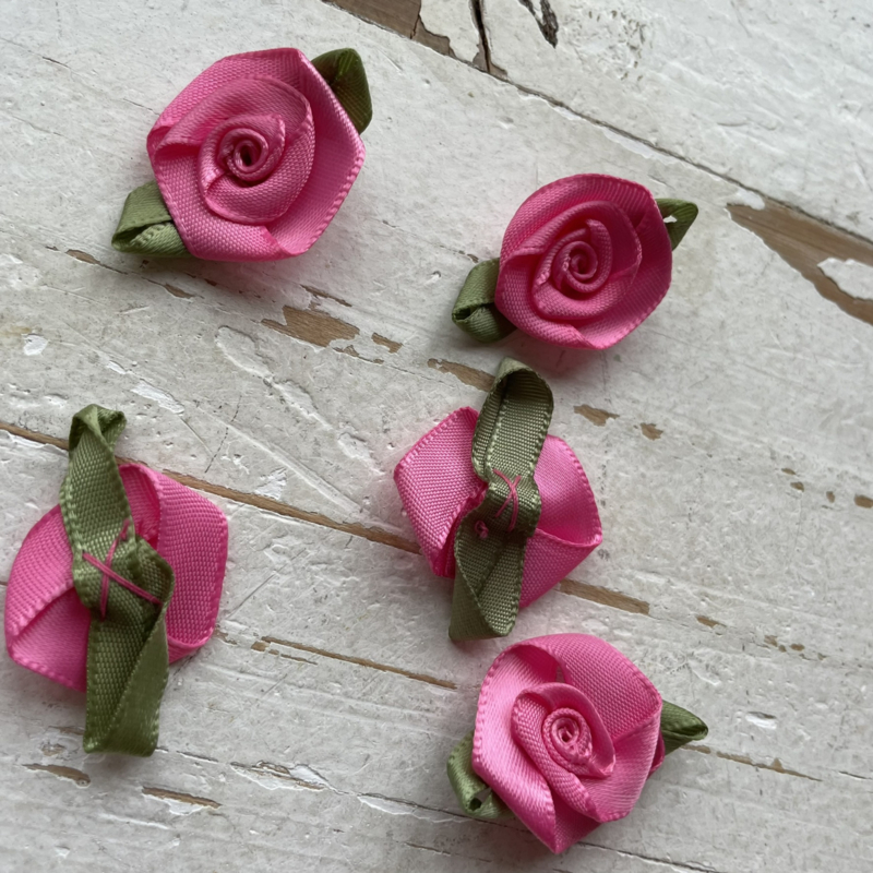 Stevig kwaliteit roosje met blad. Subtiele maar mooie roosjes verkrijgbaar in diverse kleuren! Super leuk voor het maken van haarknipjes en pimpen van tassen, kleding of geboorte trouw kaarten.