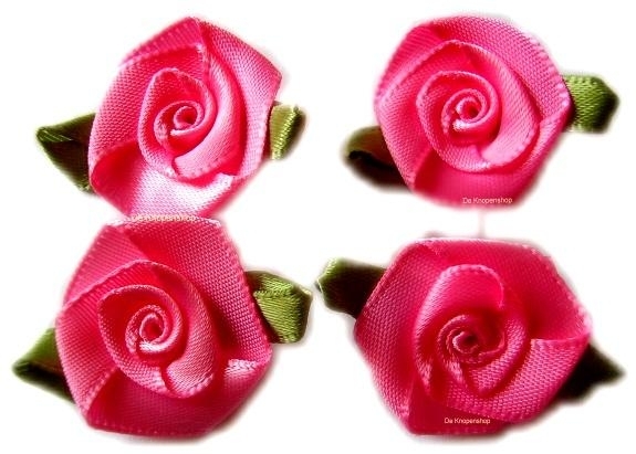 Roosjes met blad fuchsia 3.5cm.