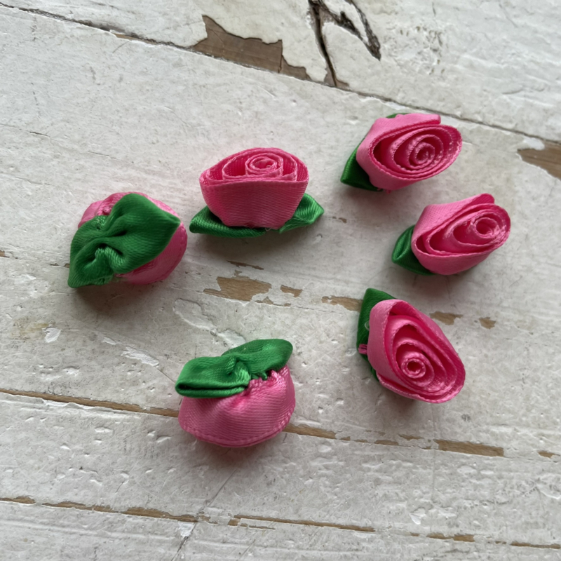 Roosjes met blad roze 3cm.