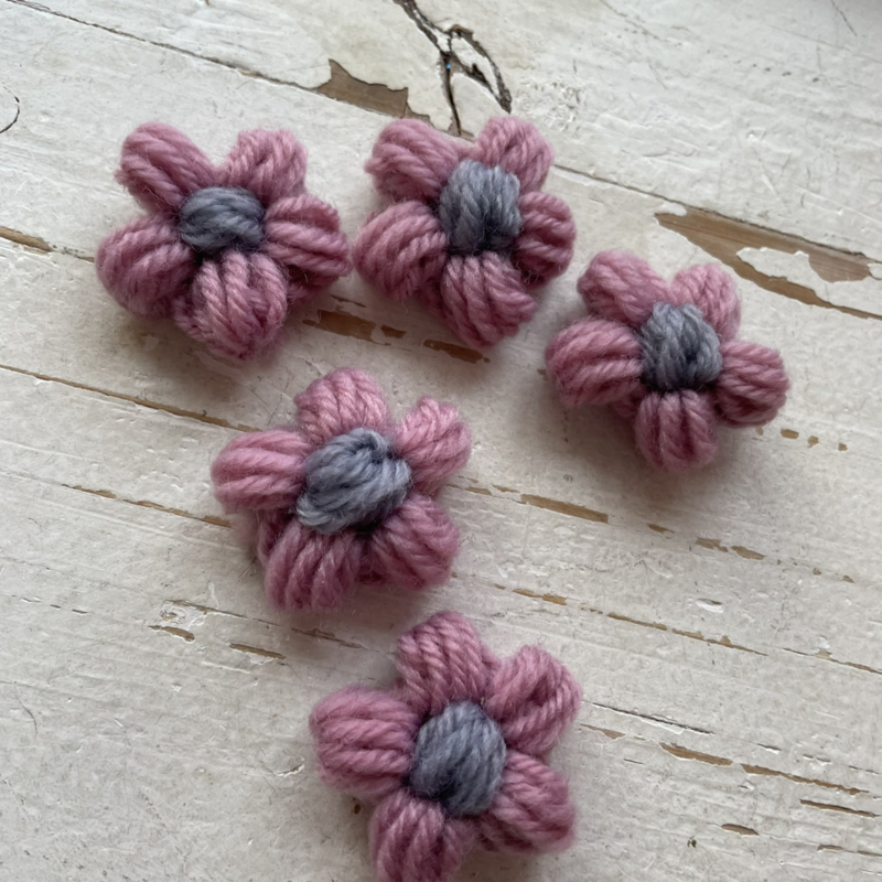 Madeliefje gehaakt paars, 5cm.