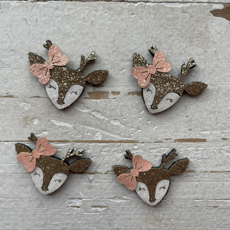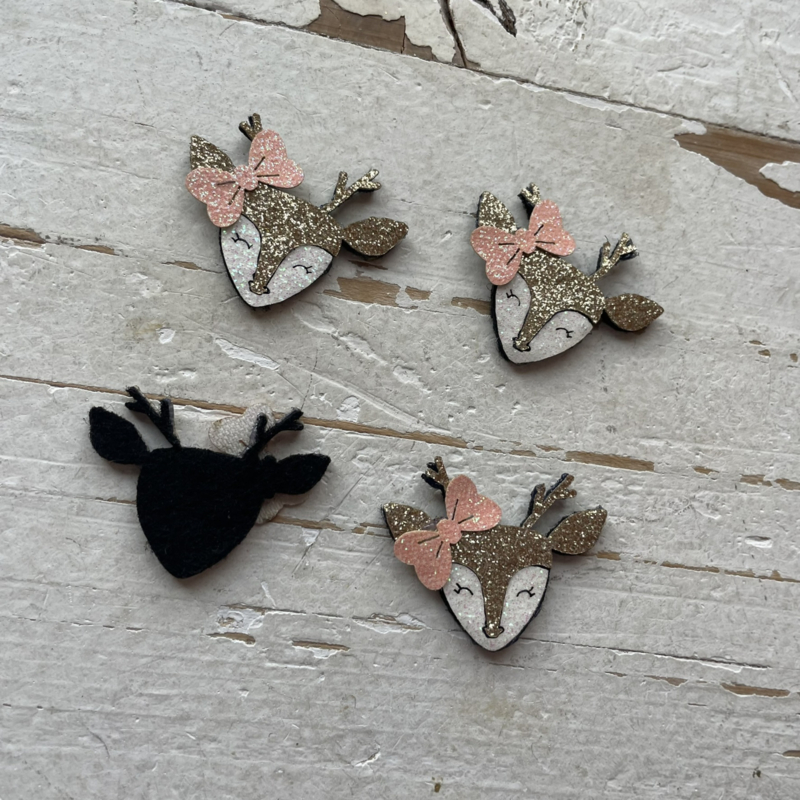 Deze leuke glitter hertjes met roze strik is super leuk op een haarknipje of diamdeem, maar ook voor alle andere DIY projecten.