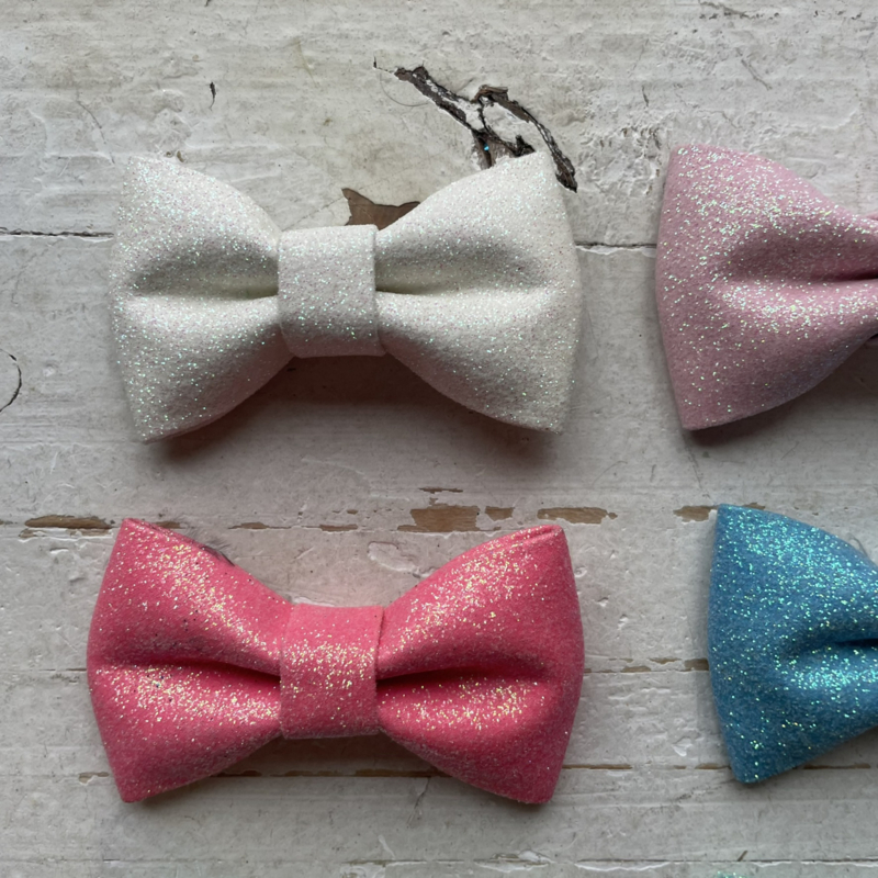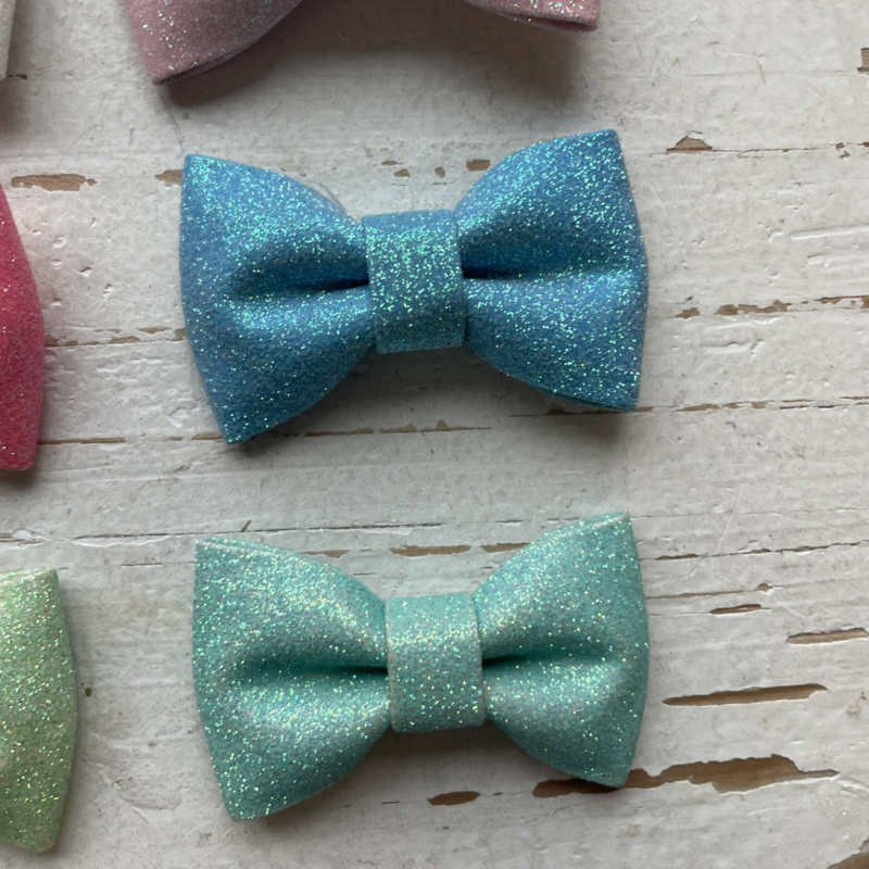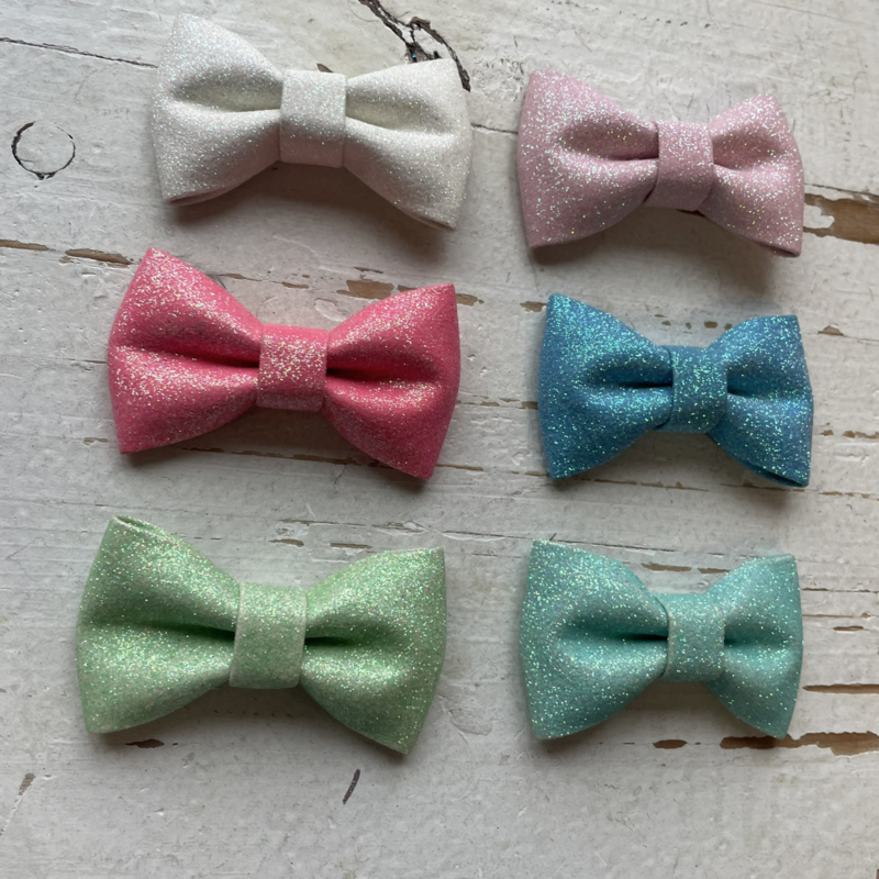 Vlinder strik glitter pastel 7cm. Diverse kleuren.