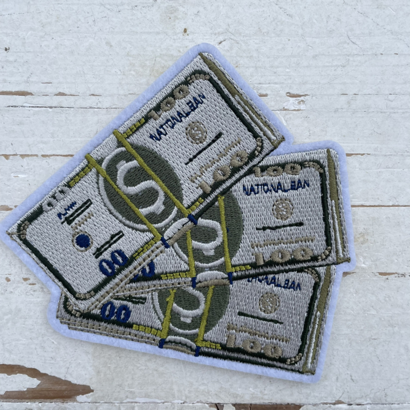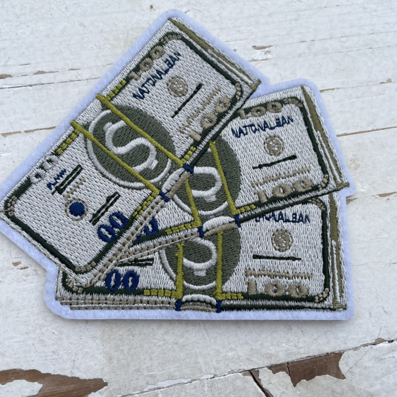 Hoe leuk is deze geld collectie applicatie voor jongens! Gemakkelijk aan te brengen op de kleding door middel van een strijkbout.