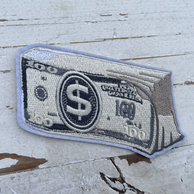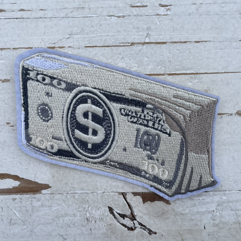 Strijkapplicatie brief geld 100 dollar 9cm.