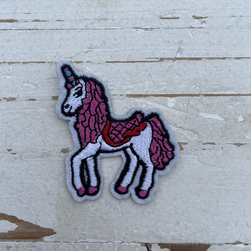 Hoe leuk is deze eenhoorn met zadel strijk applicatie! Gemakkelijk aan te brengen op de kleding door middel van een strijkbout.