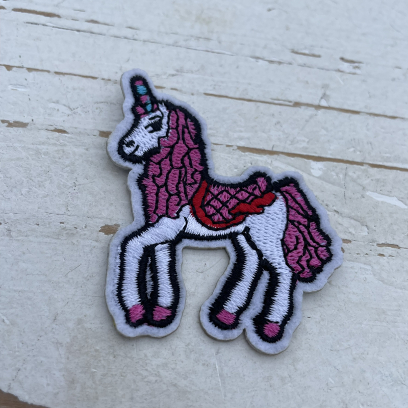 Strijkapplicatie eenhoorn met zadel 6cm.