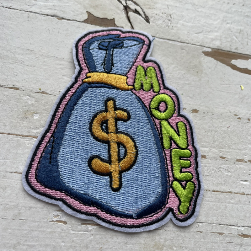 Hoe leuk is deze geld collectie applicatie voor jongens! Gemakkelijk aan te brengen op de kleding door middel van een strijkbout.