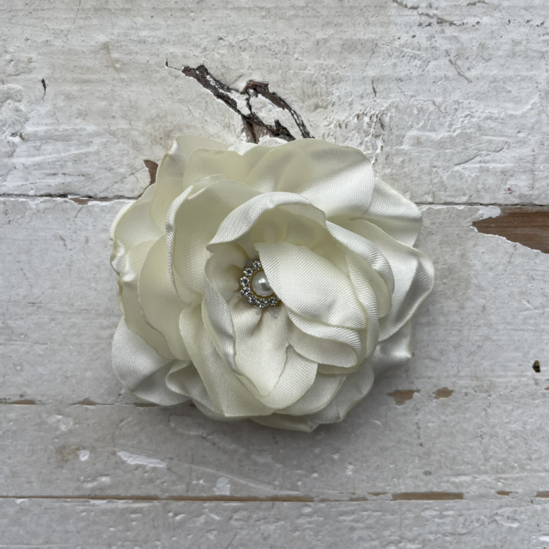 Bloem satijn met strass ivoor 6cm.