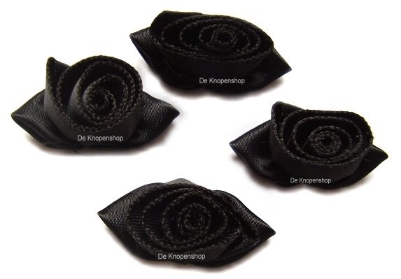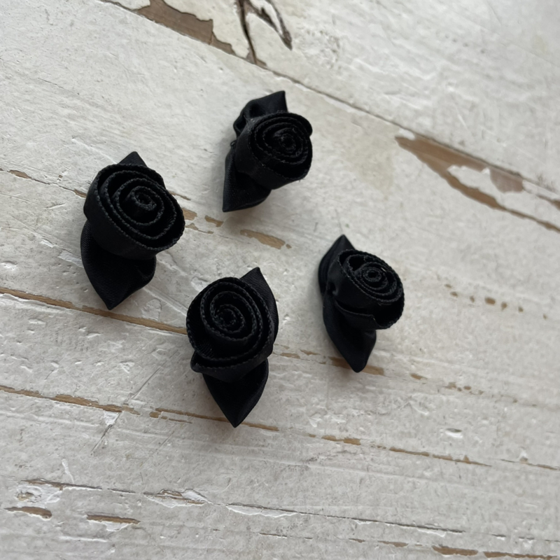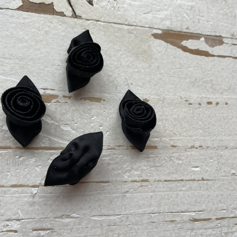 Zwarte opgerolde roosjes & zwart blad 3.5cm.